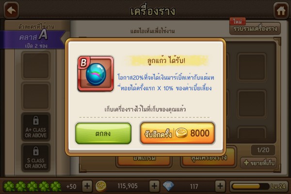 เมื่อเข้าเกมจะมีปุ่มใหม่เพิ่มเข้ามาจุดที่ข้างๆ ลูกเต๋า แทนที่ลูกบากศ์เดิม เมื่อเข้ามาเราจะสามารถเลือกสุ่มเอาจี้เครื่องรางได้ (แต่จริงๆเมื่อเข้ามาหลังแพทจะมีการสอนอยู่แล้วว่าจะได้มาอย่างไหร่) โดยการสุ่มเอาจี้เครื่องรางนี้จะสุ่มได้ทั้งเงินทองในเกมหรือเพชรที่จะการันตีได้ว่า อย่างน้อยๆ ในการสุ่มนั้นจะได้ของระดับ B-A+ แน่นอน ซึ่งเพชรเกมนี้ก็ไม่ได้หายาก และหากยิ่งเปิดจี้เครื่องราง ก็จะใช้เพชรถูกลง เพราะครั้งแรก 25 เพชร ครั้งต่อไปจะเหลือเพียง 20 เพชรเท่านั้น แต่ใช่ว่าเปิดด้วยทองจะไม่มีโอกาสเจอไอเทมระดับสูง ก็ยังมีสิทธิอยู่ครับ