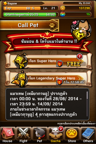 3. Pet หน้าต่างเข้าดูแมวของเราทั้งหมด รวมถึงอัพเกรดและอีโวลูชั่นที่หัวข้อนี้