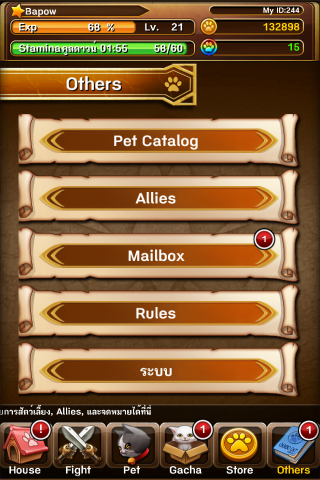 6. Others สำหรับดูแลตตาล๊อตว่าแมวเราจะไปเป็นตัวไหนหรือตัวไหนที่เรามีแล้วและ setting ต่างๆของเกม