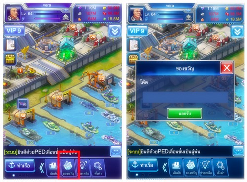 1. ในหน้าอินเตอร์เฟสด้านล่างของเกมจะมีไอคอนรูปกล่องของขวัญ