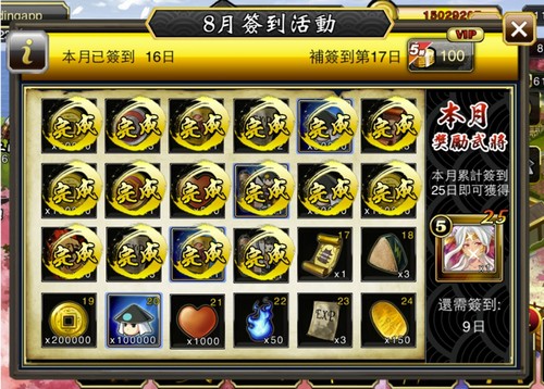 • ในช่วงเวลา VIP จะเพิ่มตำแหน่งประจำการณ์ซามูไร ในฟังก์ชั่น โรงฝึก ขึ้นอีก 1 ตำแหน่ง (ตำแหน่งที่ 6)