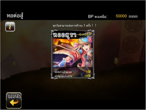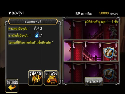 • หลังจากเข้าสู่ หอต่อสู้ ผู้เล่นสามารถ สู้กับ ศัตรูประจำชั้นต่างๆ ไปเรื่อยๆ ได้ จนกว่า ค่า BP จะหมด