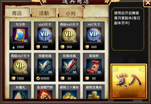 • สามารถซื้อสิทธิพิเศษ VIP ได้ในร้านค้า รายละเอียดมีดังนี้