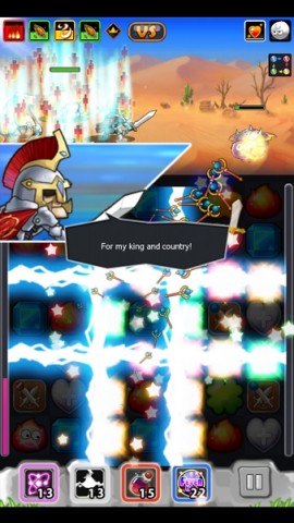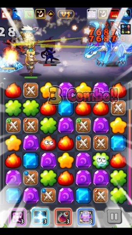 เมื่อเรียงเพชรสำเร็จ ตัวละครเราจะทำการโจมตีทันที โดยธนูจะเป็นการโจมตีของตัวละครที่ยิงระยะไกล กับดาบจะเป็นการโจมตีของตัวละครที่ยิงระยะใกล้