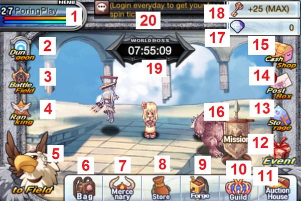 เพิ่มความพิเศษที่ผู้เล่นไม่ต้องเสียเวลาในการวิ่งหา NPC อีกต่อไป เมื่อ Ragnarok Mobile รวมเมนูต่างๆ ไว้ที่หน้า HOME ทำให้สามารถถูกเรียกใช้งานได้ง่ายขึ้นไม่ว่าจะเป็น โหมดSingle Dungeon, BattleGround, วาร์ปไปยังแผนที่ปกติ โดยไม่เสียค่าใช้จ่าย, ร้านอัพเกรดอาวุธ ชุดเกราะ, คลังเก็บของทั้งเซิร์ฟเวอร์ และคลังเก็บของส่วนตัว, กล่องจดหมาย สำหรับรับไอเทมของรางวัล รวมถึงช่องทางการสนทานา และอื่นๆ อีกมากมาย