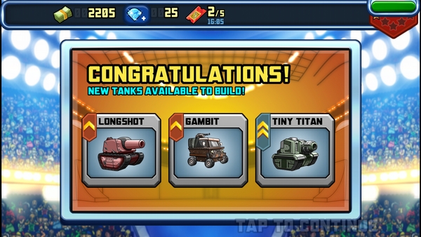 เราสามารถนำเงินที่ได้จากการแข่งขันมาอัพเกรดรถถังของเราได้ โดยยิ่งอัพเกรด ก็จะได้พลังชีวิตมากขึ้น พลังโจมตีสูงขึ้น หรือบางคันก็อาจจะได้ท่าพิเศษเพิ่มขึ้น