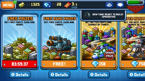 นอกจากการสร้างประกอบรถถังเองแล้วยังสามารถสุ่มรถถัง เงิน หรือชิ้นส่วนต่างๆได้จาก กล่องรางวัลปริศนาจากในเกมได้อีกด้วย