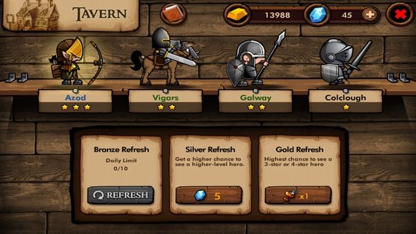 เราสามารถจ้างทหารได้ที่ร้าน Tavern โดยทหารที่อยู่ไหนนั้นจะเป็นแบบสุ่ม แต่เราสามารถสุ่มทหารใหม่ได้โดยการกด Refresh หรือใช้เงินในการสุ่ม ซึ่งจะทำให้ได้รับทหารที่แข็งแกร่งยิ่งขึ้น