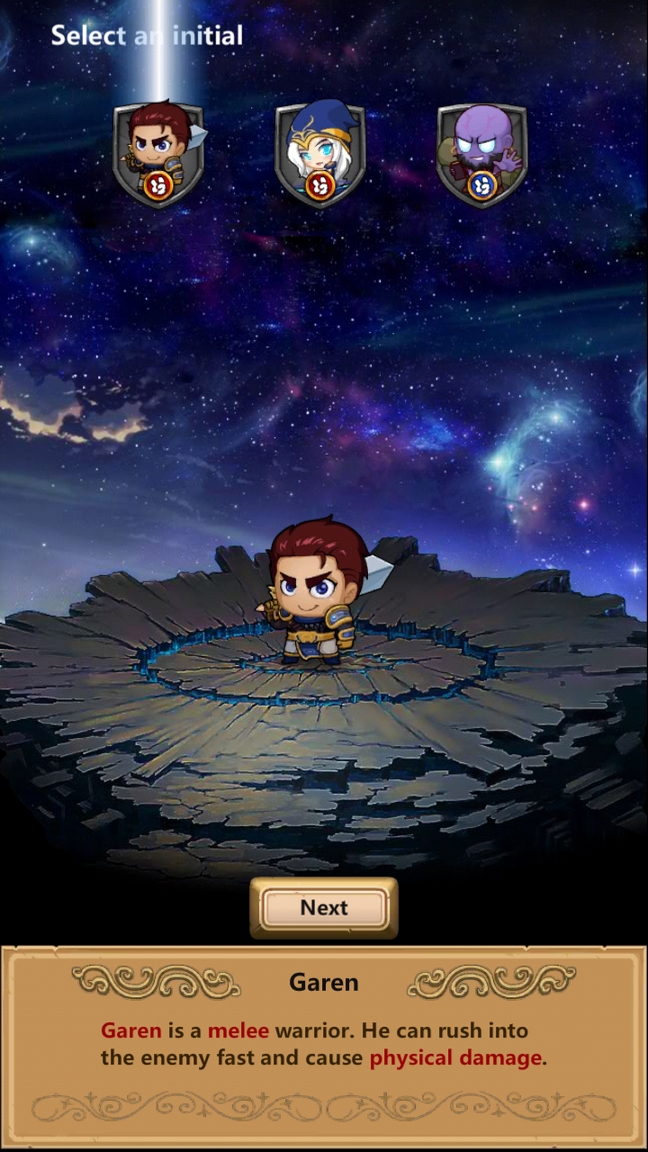 เริ่มเกมจะมีให้เลือกแชมป์เปี้ยน 3 ตัวได้แก่