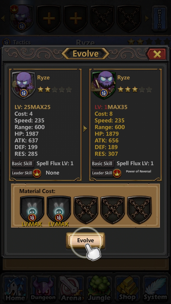 การเพิ่มระดับสามารถทำได้ โดยการนำ Cheep หรือ Hero Card มาเสริมระดับให้กับฮีโร่ของเรา