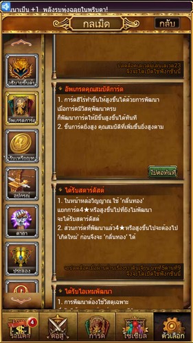 ผู้เล่นสามารถหาอ่านคำอธิบายรายละเอียดต่างๆ ได้ในเมนูกลเม็ด โดยให้เลือกไปที่หัวข้อที่สอง ซึ่งคุณสามารถศึกษารายละเอียดต่างๆ ในการอัพเกรดการ์ดของคุณได้ และสามารถกดคำสั่ง “ไปต่อทันที” เพื่อข้ามไปยังเมนูการต่อสู้ได้ในทันที