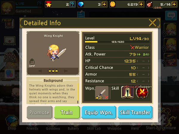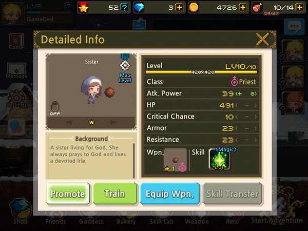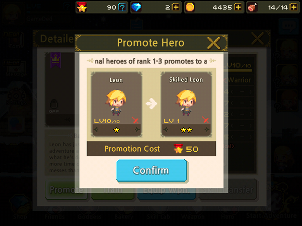 Hero ภายในเกมส์นี้ จะแบ่งออกเป็น 6 อาชีพได้แก่ Warrior Paladin Archer Hunter Wizard และ Priest และแบ่งระดับความหายากเป็น 3 ระดับได้แก่ Normal Hero, Master Hero และ Legendary Hero เมื่อฮีโร่เลเวลเต็มเราจะสามารถทำการ Promote ฮีโร่ตัวนั้นเพื่อเลื่อนระดับ * ของฮีโร่ตัวนั้นได้ นอกจากนั้นเรายังสามารถหาอาวุธมาใส่เพิ่มความสามารถให้เหล่า Hero และยังสามารถอัพสกิลเพิ่มเติมให้กับเหล่าฮีโร่ได้อีกด้วย