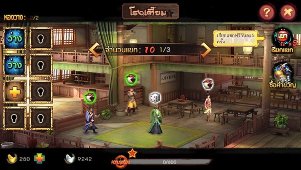เท่านั้นยังไม่พออีกหนึ่งระบบที่สนุกไม่แพ้การต่อสู้ นับเป็นมินิเกมที่แฝงกลิ่นอายจีนได้อย่างลงตัว คือโหมดโรงเตี๊ยม ที่จะเป็นที่สำหรับการเปิดต้อนรับลูกค้า เลี้ยงเหล้าและทอยลูกเต๋าเพื่อลุ้นรับเงินรางวัล เป็นอีกหนึ่งช่องทางในการหาเงินของเราเลยก็ว่าได้