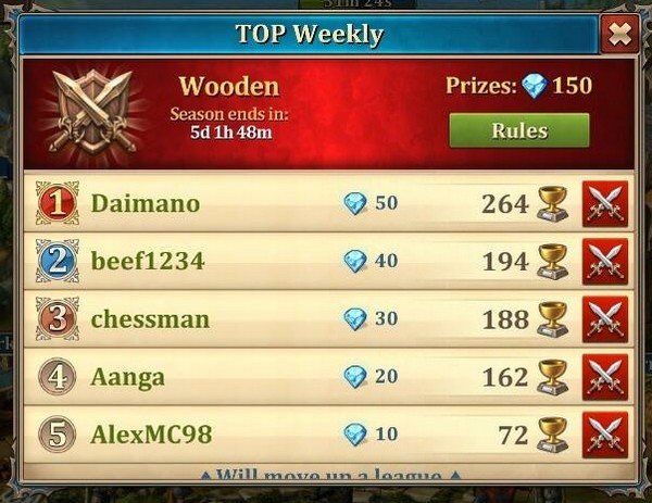 PVP ไว้ปล้นอาณาจักรผู้เล่นคนอื่น ซึ่งถ้าปล้นสำเร็จ จะได้แต้ม Reward พิเศษมาด้วย (เป็นรูปถ้วยทอง) และถ้าได้เป็น Top 5 ของผู้ที่มี Reward สูงสุดในสัปดาห์นั้นๆ ก็จะได้เพชรไปฟรีๆ อีกจำนวนหนึ่งด้วย