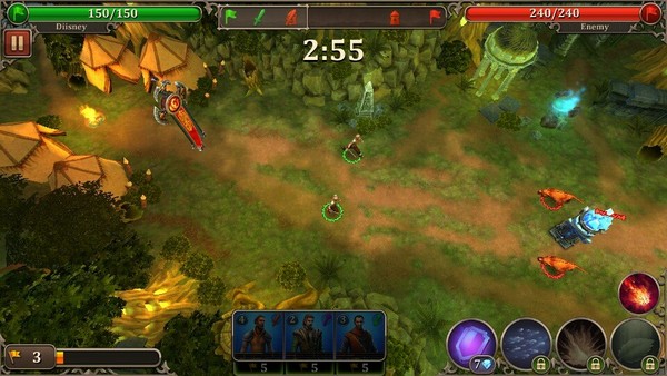 เข้าสู่ฉากต่อสู้กันเลยดีกว่า จะมีเวลาแรกเริ่มให้อยู่ 3-5 นาที (แล้วแต่ด่าน) และให้ค่าสร้างทหารด้านมุมซ้ายล่าง โดยเราต้องคำนึงถึงคู่ต่อสู้ ในการเลือกทหารออกมา