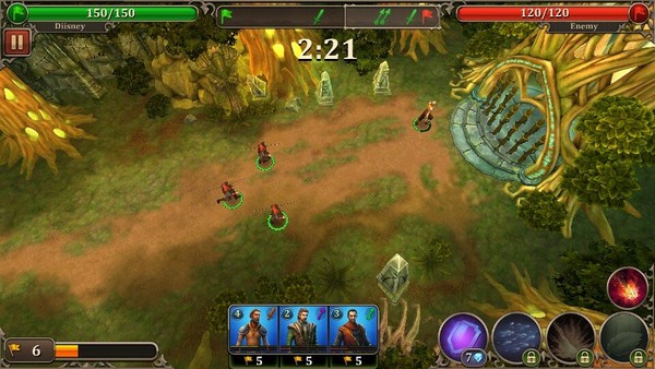 วิธีชนะ ดูที่เลือดของฝ่ายศัตรู สีแดงด้านบนขวา ถ้าเราโจมตีจนหมด ก็จะเป็นฝ่ายชนะ แถบตรงกลางแสดงถึง ทหารที่กำลังเดินทางระหว่างป้อมเรา ไปยังป้อมศัตรู แต่ในทางกลับกัน ถ้าแถบสีเขียวด้านซ้ายบน ซึ่งเป็นแถบเลือดของเรา ถ้าหมดไป เราก็จะเป็นฝ่ายแพ้ได้เช่นกัน