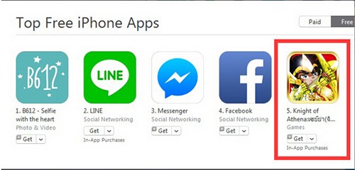 ก้าวเข้าสู่ความยิ่งใหญ่ใน App Store Top Free ล่าสุด เกม Knight of Athena : เซย์ย่า (จ้าวนรกฮาเดส) ขึ้นสู่ Top Free ลำดับที่ 5 และ Top Grossing ลำดับที่ 6 ในช่วงปีใหม่