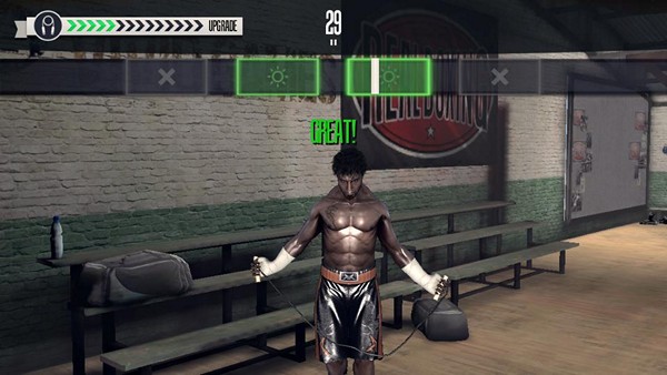 ก่อนจะเข้าสู่เวทีการต่อสู้ เราสามารถทำการฝึกฝนตัวนักมวยของเราได้ที่ Gym ซึ่งเปรียบเสมือนเป็นมินิเกมเล็กๆ ให้เราเล่นฆ่าเวลา เพราะไม่ใช่แค่การกดซื้ออัพเดททั่วไป แต่เป็นการกดแป้นให้ตรงจังหวะสี ซึ่งสกิลแต่ละอย่างก็ใช้การฝึกที่แตกต่างกันไป