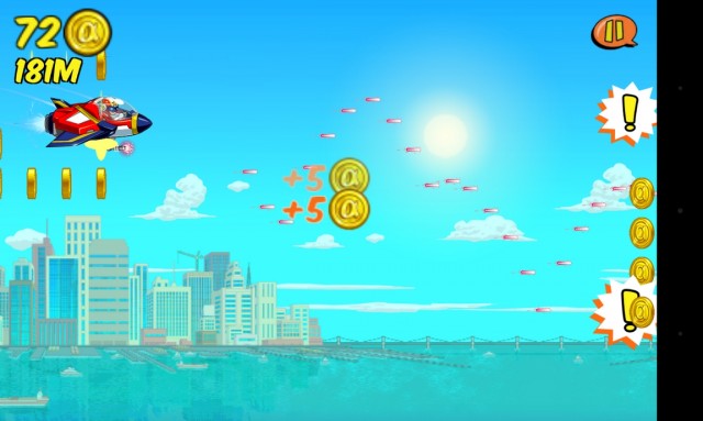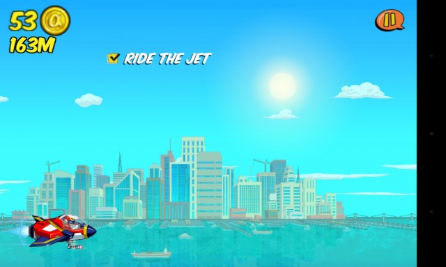 เมื่อเราเก็บไอเทมรูปยานได้ก็จะขึ้นไปขับยาน Super Jet ได้ ซึ่งวิธีการบังคับค่อนข้างยากอยู่คือ เมื่อแตะหน้าจอยานจะลอยขึ้นไป โดยเราจะต้องบังคับยานเพื่อหลบสิ่งกีดขวาง และเก็บเหรียญให้มากที่สุด โดยมีไอเทมช่วยเหลือเพียงอย่างเดียวคือปืนของยาน แต่หากยานโดนสิ่งกีดขวางเราจะกลับสู่โหมดวิ่งเหมือนเดิม
