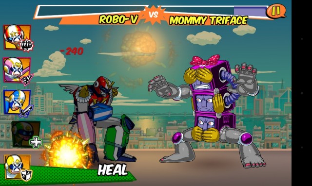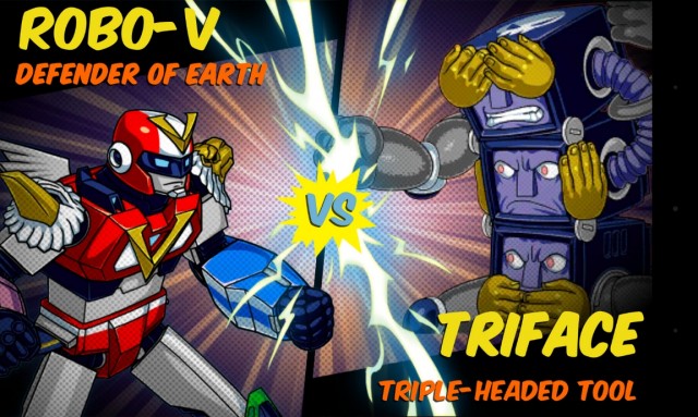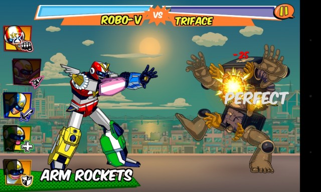 โหมดต่อสู้ดวลกับปีศาจ เมื่อเราวิ่งไปได้ซักพักจะมีปีศาจตัวยักษ์จะออกมาโจมตีเมือง เราจะต้องเข้าไปบังคับหุ่น Robo V เพื่อต่อสู้กับปีศาจ