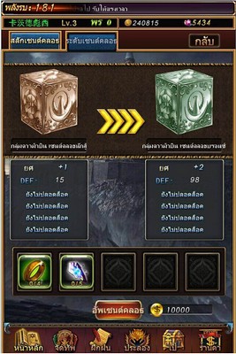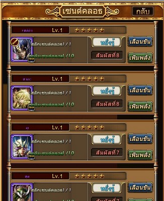 นอกจากนี้เรายังสามารถพัฒนาเพิ่มระดับคลอธของเราให้ถึงระดับโกลคลอธได้อีกด้วย เมื่อระดับเซนต์คลอธของเราเพิ่มขึ้นแล้ว ค่าความสามารถต่างๆ ของเซนต์คลอธที่เราปลดล็อคไว้จะเพิ่มสูงยิ่งขึ้นไปอีกหลายเท่าตัว! โดยสามารถหาวัตถุดิบในการเพิ่มระดับได้ในฟังก์ชั่น แดนเทพ