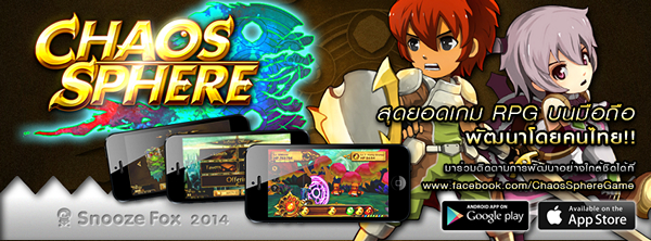 Chaos Sphere เกมส์มือถือใหม่จาก Snooze Fox ทีมพัฒนาสายเลือดไทยฝีมือระดับเทพ บรรยากาศภายในเกมส์พาให้เรานึกถึงเกมส์ RPG ในสมัยก่อน ทั้งเนื้อเรื่องที่เรียบง่ายแต่มีความเป็นแฟนตาซีแบบเต็มๆ ระบบอาชีพที่เราคุ้นเคย ไม่ว่าจะเป็นนักดาบ นักธนู นักเวธ ที่ผู้เล่นสามารถเลือกได้ตลอดเวลา เพราะตัวละครทั้ง 3 อาชีพมีมาให้เราพร้อมเลือกมาใช้ได้ตลอดเวลา แถมอาวุธที่เราถือจะเปลี่ยนแปลงไปตามอาวุธที่เราสวมใส่ได้อีกด้วย