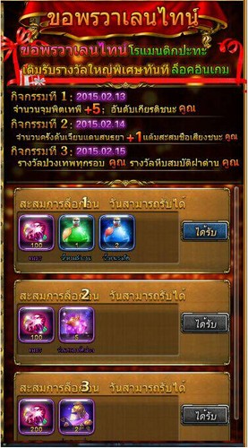 3. ทุกวันผู้เล่นนำค่าสนิทสนมไปแลกห่อของขวัญวาเลนไทน์ได้ (ห่อรางวัลอย่างหนึ่งแลกได้วันละครัง)