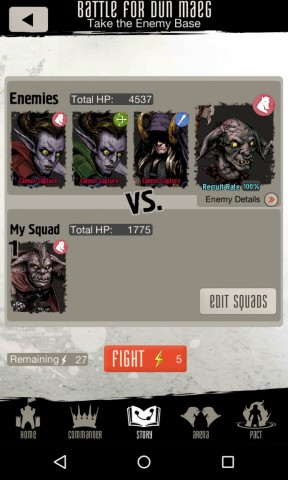 ก่อนเริ่มการต่อสู้จะต้องจัดทีมก่อน ซึ่งสามารถจัดได้ 3 ทีม ทีมละ 5 ยูนิต โดยแต่ละด่านจะใช้จำนวนทีมไม่เหมือนกัน บางด่านอาจจะใช้ 1 ทีม บางด่านใช้ 3 ทีม
