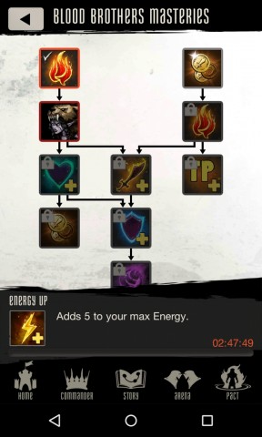 สกิลพิเศษของกองทัพ เราสามารถใช้ได้เมื่อเก็บค่า Tactics Points (ได้เทรินละ 10) เมื่อกดแล้วสามารถใช้ได้ทันที ซึ่งมีทั้งยิงหินใส่กองศัตรู หรือฟื้น HP ทีมตัวเอง โดยสามารถไปปลดล็อคสกิลอื่นๆได้ที่ Masteries