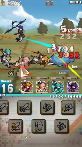 ผู้เล่นสามารถเลือกได้ว่าจะให้ฮีโร่โจมตีแบบไหน หรือจะใช้ Chain Attack อย่างไรจากแผงที่ปรากฏขึ้นมาด้านล่าง ซึ่งเป็นความสนุกของเกม RPG แบบใหม่นั่นเอง