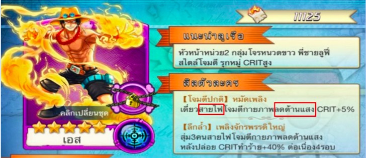 การโจมตีสายไฟ –> จะติดดีบัพลดป้องกันธาตุ “แสง” ไว้กับศัตรูที่ถูกโจมตี