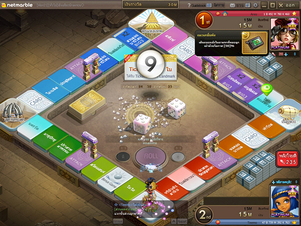 ถ้าเลเวลเต็ม +5 เมื่อคู่แข่งทอยลูกเต๋าตกที่เมืองฝ่ายตรงข้าม [14%] จะย้ายไปช่องเที่ยวรอบโลก