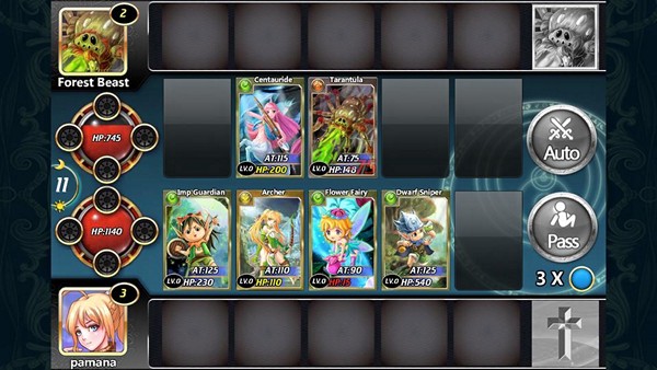 รูปแบบการต่อสู้จะเป็นแบบ Card Battle มีทั้งแบบกดเล่นเอง ที่ต้องกำหนดการวางการ์ด การกดผ่าน หรือเล่นแบบอัตโนมัติก็ได้ ตัวการ์ดจะทำการต่อสู้เอง ตามที่เราได้มีการจัดทีมการ์ดมา