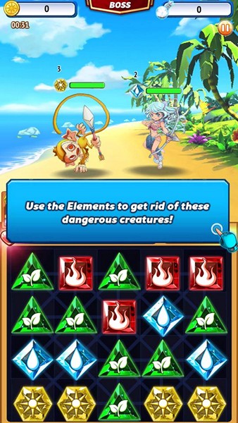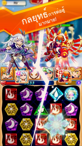 รูปแบบการเล่นจะเป็นการเรียงเพชรธาตุต่างๆ ตามสีเพื่อส่งพลังฮีโร่ที่ตรงกับธาตุที่เราเรียงได้ แล้วจะเปลี่ยนเป็นพลังในการโจมตี โดยที่เพื่อนๆ ต้องศึกษาวิธีการข่มกันของธาตุๆ เพื่อกำจัดศัตรูได้ง่ายขึ้น เช่น ศัตรูเป็นธาตุไฟ เราก็สู้ด้วยสกิลธาตุน้ำ หรือไฟชนะพืช/พืชชนะน้ำ/ดวงอาทิตย์ชนะดวงจันทร์ เป็นต้น