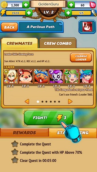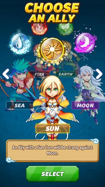 ซึ่งเราสามารถจัดทีมฮีโร่ของเราเพื่อออกไปผจญภัยด้วยได้สูงสุดถึง 5 ตัว ในธาตุต่างๆ