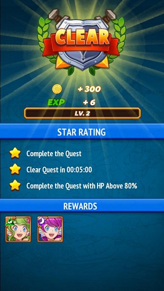 เมื่อชนะในแต่ละด่านเราจะได้ทั้งเงิน ทั้งไอเทม รวมถึงฮีโร่ที่เราดรอปมาได้ เพื่อนำมาจัดสรรทีมใหม่ได้ตามใจชอบ รวมไปถึงการนำมาพัฒนาเลเวลและวิวัฒนาการ โดยใช้เงินหรือฮีโร่ตัวอื่นในการอัพเกรด
