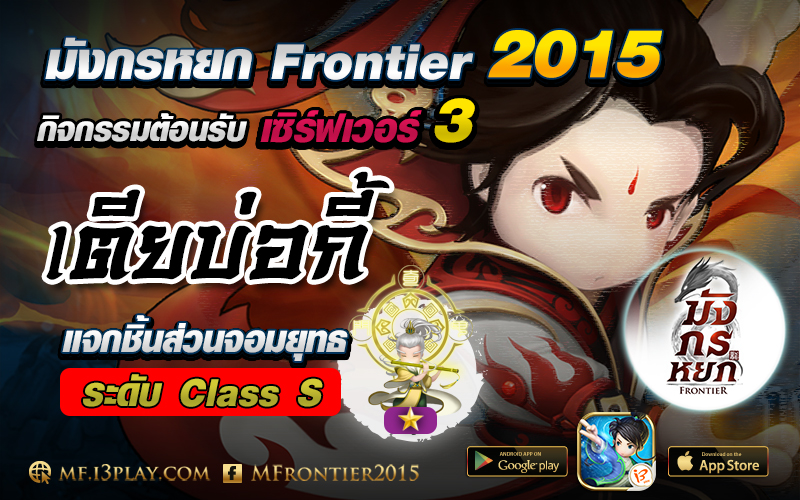 Game-Ded ร่วมกับเกมมือถือใหม่ มังกรหยก Frontier 2015 เกมที่จับเอาเหล่าจอมยุทธชื่อดังจาก มังกรหยก และ นวนิยายจีนชื่อดังหลายเรื่อง มาให้คุณได้พบและผจญภัยในโลกยุทธภพ เพื่อเป็นการตอบรับกระแสร้อนแรงจนต้องเปิดเซิร์ฟเวอร์ที่ 3 “เตียบ่อกี้” ทางเราก็มีซีเรียลไอเทมโค๊ด แจก “ชิ้นส่วนจอมยุทธระดับ Class S” มาให้เพื่อนๆ ที่เป็นแฟนคลับเกมนี้ครับ