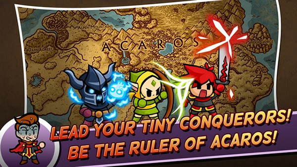 Tiny Conquerors เกมแนว RPG เน้นรูปแบบการส่งกองกำลังทหารไปทำการยึดเมืองของศัตรู ด้วยภาพกราฟิกการ์ตูนสุดคลาสิก ออกแนวเกมคอนโซลสมัยก่อน แต่สีสันสดใส คงถูกใจคอเกมแนววางแผน คิดค้นกลยุทธ์ในการวางทหาร ซึ่งออกแนวโรบอทนิดๆ เรียกว่าแค่ลองก็วางไม่ลงเลยแหละ