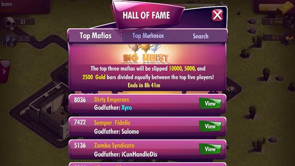 ในเกมก็ยังมีระบบ Hall of fame ไว้แสดงความเก่งกาจของคะแนนที่เพื่อนๆในเกมทำได้ มีไว้วัดกันให้เห็นเลยว่าแก๊งค์ใครใหญ่ เจ้าพ่อคนไหนน่ากลัวสุด