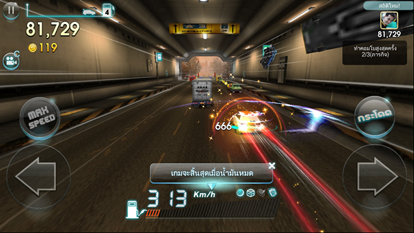 - ปล้นรถบรรทุก! – เพียงกดกระโดดก่อนที่จะถึงรถบรรทุก จะสามารถชนรถคันอื่นได้ และประหยัดน้ำมัน