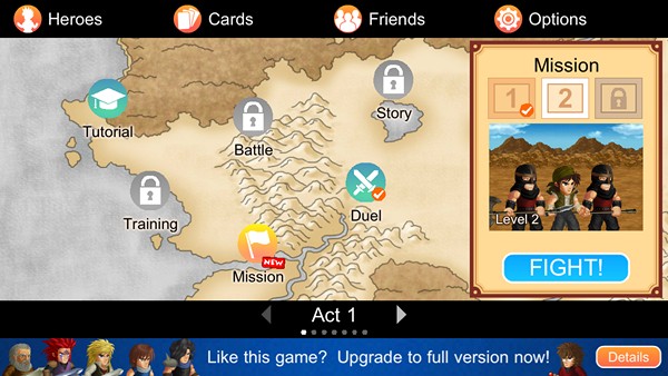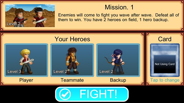 ส่วนการอัพเดทฮีโร่นั้น ตัวเกมจะออกแบบมาให้อัพเดทเองอัตโนมัติเมื่อนำฮีโร่ตัวนั้นออกไปต่อสู้แล้วขนะมาก็จะได้ค่า EXP ในการเพิ่มเลเวลนั่นเอง รวมไปถึงเรายังสามารถกดใช้การ์ดช่วยเหลือต่างๆ เข้าไปก่อนการต่อสู้ได้ เพื่อช่วยเพิ่มสกิลตามที่การ์ดกำหนด