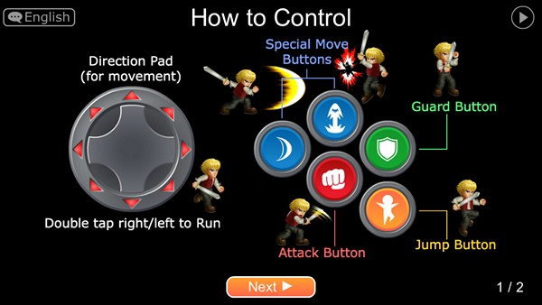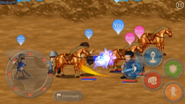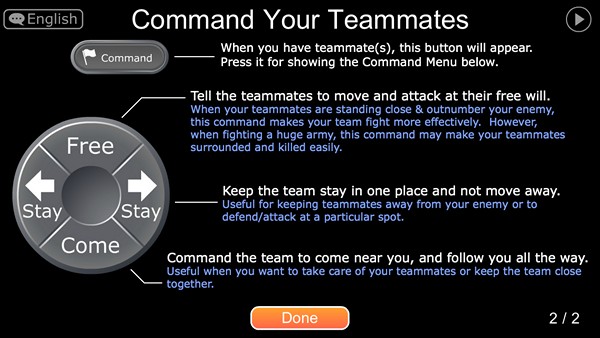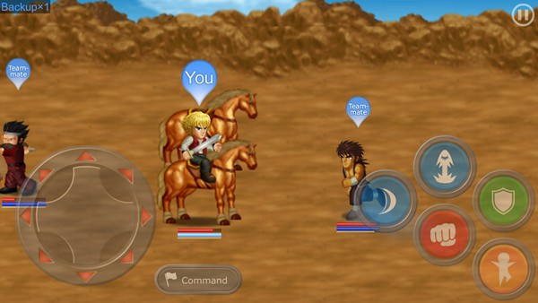วิธีการควบคุมการเล่นก็คือ ทางด้านซ้านจะเป็นปุ่มเหมือนจอยเกมคอนโซลที่เราเคยเล่นกัน เพราะเป็นปุ่มควบคุมทิศทางได้รอบทิศ ให้เดินได้อย่างอิสระ รวมถึงถ้ากดค้างจะเป็นการออกคำสั่งกับทหารที่อยู่ในความควบคุมเรานั่นเอง ส่วนทางด้านขวา จะเป็นปุ่มควบคุมการต่อสู้ ทั้งการต่อสู้ปกติ การใช้สกิล การป้องกัน การวิ่ง การกระโดดนั่นเอง