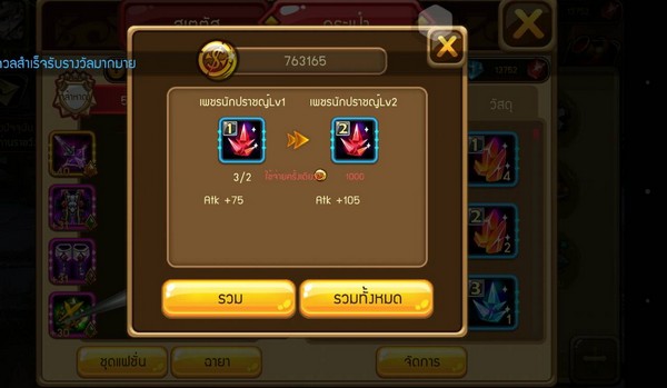 เราสามารถหลอมเพชรเพื่ออัพเกรด lv ของเพชร การหลอมเพชร lv1 ไป lv2 นั้นจะต้องใช้ เพชรชนิดเดียวกันเท่านั้นถึงจะอัพเกรดได้ ถ้าต้องการหลอม lv2 จะต้องเอา lv1 หลอมกับ lv1 ถึงจะเป็น lv2 เช่นเดียวกันถ้าจะเอา lv3 ต้องใช้เพชร lv2 สองชิ้นมารวมกัน