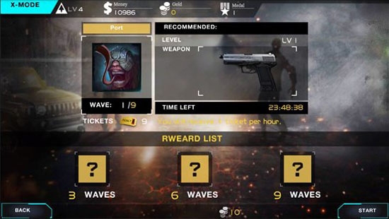และใน X-mode ผู้เล่นจะต้องเลือกระดับความยาก จากนั้นก็สามารถเตรียมอาวุธต่างๆ ไอเทม เช่น กับดัก หรือระเบิด ได้ก่อนที่ซอมบี้จะปรากฏตัว