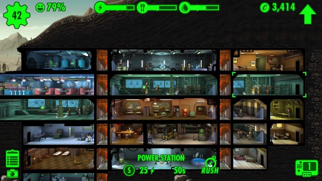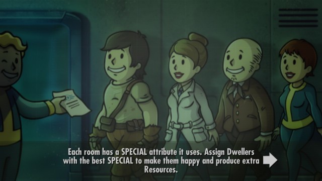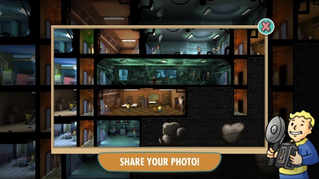 สำหรับเกม Fallout Shelter บนมือถือได้สลัดภาพโลกหันโหดร้ายเปลี่ยนมาเป็นตัวละครบ๊องแบ้ว(แต่เกมไม่แบ้วนะครับ) ที่เราจะรับบทเป็นผู้ดูแล Vault หลุบหลบภัย คอยบริหารจัดการทรัพยากรให้อยู่รอดจากมหาตภัยครั้งนี้ และสร้างความมั่นคง และเพิ่มความสุขให้กับผู้อยู่อาศัย
