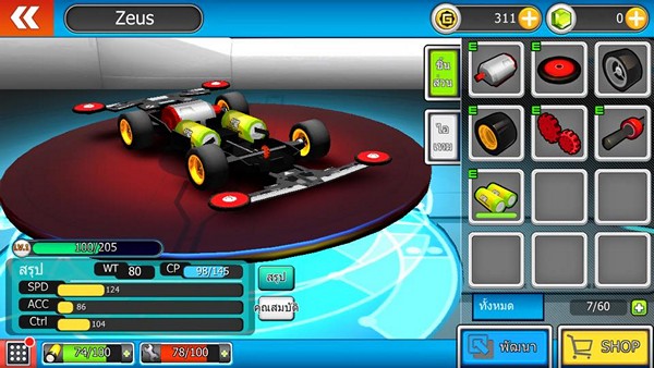 ก่อนเริ่มการแข่งเราจะเข้าสู่หน้าต่างของการแสดงโชว์รถ ที่มีฟังก์ชั่นต่าง ๆ สำหรับการปรับแต่งตัวรถได้ตามใจชอบ อะไหล่มีให้มาแบบจัดเต็ม ทั้ง มอเตอร์ โรลเลอร์ ล้อ กันชนหน้าหลัง กันกระแทก เฟือง เพลาล้อ แบตเตอรี่ สามารถเลือกได้ตามใจชอบ แต่ต้องมีเงินด้วยนะ ทุกอย่างซื้อรัวๆ แต่นับเป็นหัวใจสำคัญของเกมนี้ ไม่เน้นตอนวิ่ง เน้นตอนแต่งกันมากกว่าซึ่งก็ไม่ใช่แค่แต่งสวยๆ อะไหล่พวกนี้ช่วยเพิ่มค่าความสามารถให้เช่นเดียวกัน แต่โดยรวมก็จะขึ้นอยู่กับค่าเริ่มต้นของรถที่ซื้อมาด้วยล่ะว่าเป็นประเภทไหน เน้นสมดุล เน้นเร็ว เป็นต้น