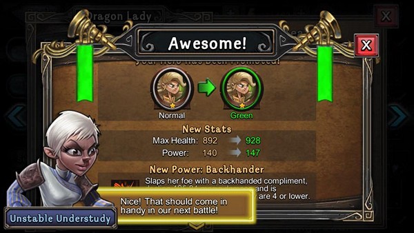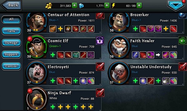 การอัพเดทฮีโร่ เริ่มแรก ฮีโร่ทุกตัวจะมี 1 ดาว หรือ 2 ดาวก่อน เราสามารถพัฒนาอัพเกรดเพิ่มขึ้นได้ จากการสวมใส่อุปกรณที่ดรอปได้จากในเกมเป็นตัวเพิ่มความสามารถ จากดาวสีขาวเป็นดาวสีเขียวระดับขึ้นไปเรื่อยๆ สามารถใส่สกิล ใส่อาวุธให้ฮีโร่แต่ละประเภทที่ก็สามารถอัพเกรดเลเวลได้เช่นกัน