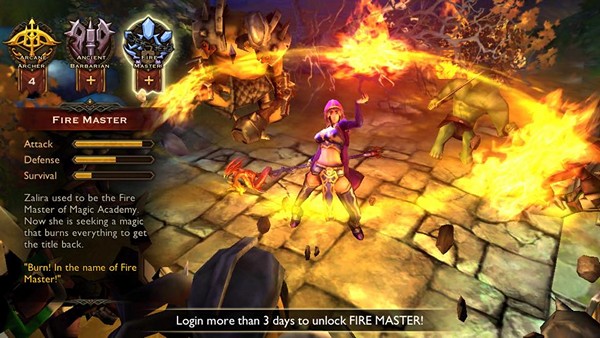 อาชีพที่ 3 Fire Master นักเวทย์มนตร์ไฟ มาพร้อมคถาเวทมนตร์มังกรไฟ แน่นอนว่าเธอมีพลังการทำลายล้างที่สูงมาก เพราะใช้ไฟในการทำลายล้าง แต่พลังการป้องกัน และพลังชีวิตก็ต่ำมากเช่นกัน เพราะฉะนั้นถ้าจะใช้ตัวนี้ ก็ต้องวางแผนดีๆ อย่าเอาไปคลุกวงในไม่งั้นตายเอาง่ายๆ