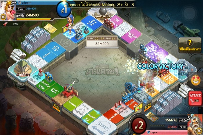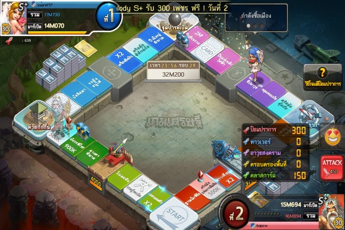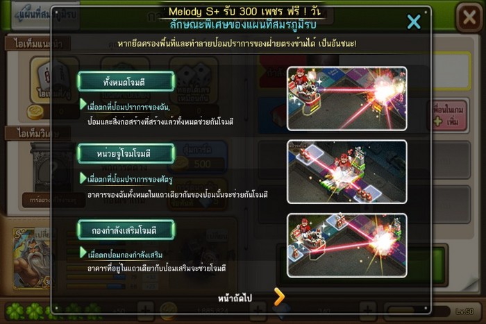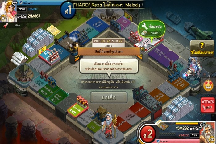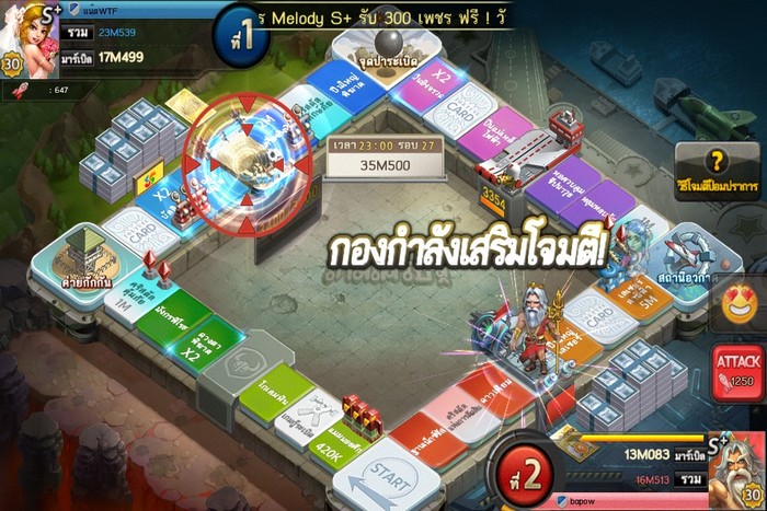 เราจะสามารถเพิ่มพลังการโจมตีของเราได้จาก ระดับของการ์ดตัวละครที่เล่นในเกมนั้นๆ เครื่องรางและจำนวนเมืองในกระดานที่เรายึดครองอยู่และเรายังสามารถอัพเกรดฐานของเราได้อีกเมื่อตกที่ฐานหรือจุดเริ่มต้น และแน่นอนเมื่อเล่นไปพักใหญ่ฐานเราอาจจะโดนยิงจนใกล้พังก็สามารถซ่อมแซมได้โดยถ้าเราตกที่จุดเริ่มต้นจะมีคำสั่งให้ซ่อมแซมขึ้นมาแต่การอัพเกรดและซ่อมต้องใช้เงินอย่าลืมเหลือเงินไว้เพื่อตกช่องด้วยละ