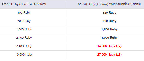 เมื่อซื้อ Ruby ช่วงระยะเวลากิจกรรม รับ Ruby เพิ่มจากเดิม